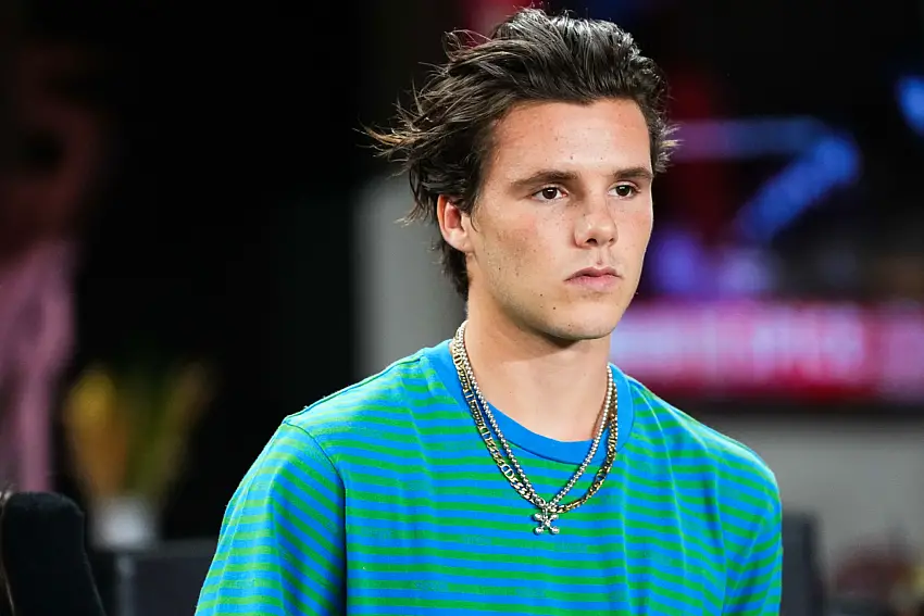 Oct 18, 2023; Fort Lauderdale, Florida, USA; Brooklyn Beckham in attendance for the match between Inter Miami and Charlotte FC at DRV PNK Stadium. Mandatory Credit: Jasen Vinlove-USA TODAY Sports/Sipa USA - Photo by Icon sport - Photo by Icon Sport