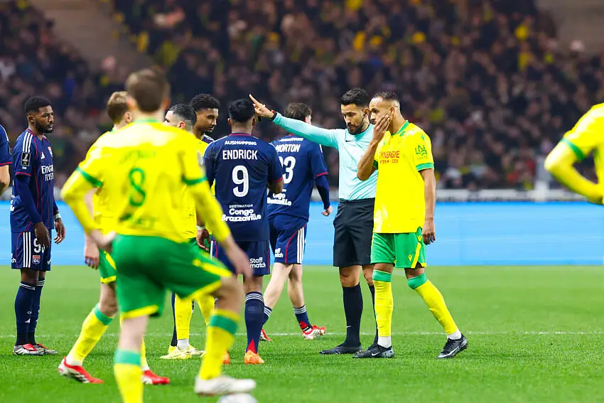 Prêté par le Real Madrid, le Brésilien avait déjà commencé fort, avec un carton jaune dès la 2e minute pour un tirage de maillot. À l’heure de jeu, à la lutte avec Dehmaine Tabibou, Endrick intervient en retard et tacle la cheville du Nantais. L’arbitre, Monsieur Vernice, dégaine un second avertissement et expulse le joueur. Puis la VAR s’en mêle. Après visionnage, le jaune est annulé, remplacé par un rouge direct. Une décision lourde, qui change tout.